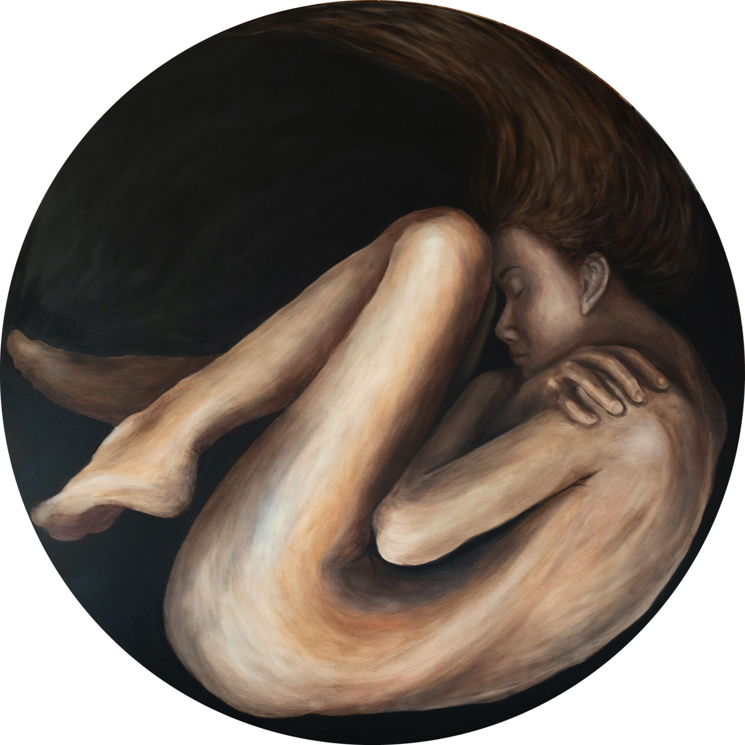Circle of Becoming is a deeply personal portrait of my daughter, painted on a round board to reflect the ongoing nature of growth and memory. The inspiration came from something she once said to me: “Mama, no matter how big I become, I’ll always carry my younger self.” Her words stayed with me, and this painting became a way to share the quiet wisdom in them.